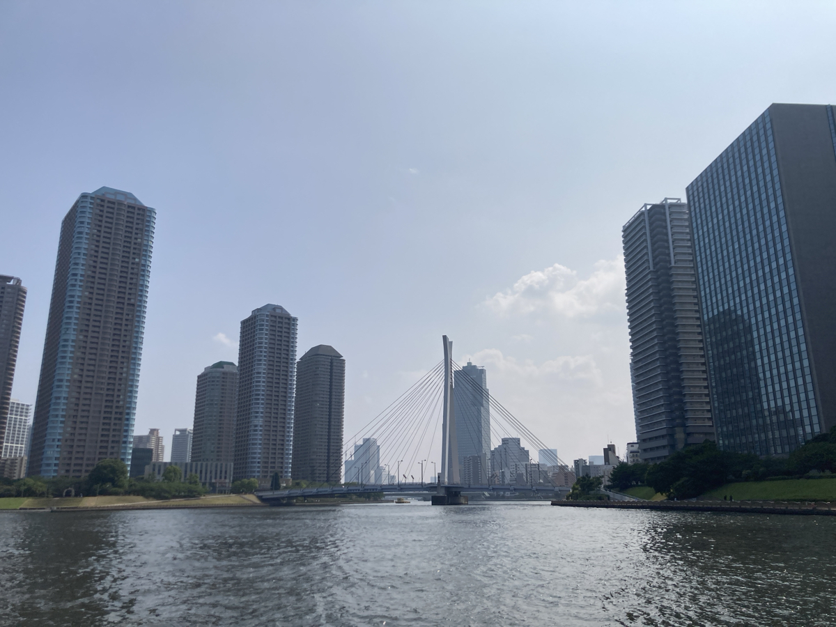 東京の街並みを川から見上げて眺める。初めての光景にテンションが上がります。