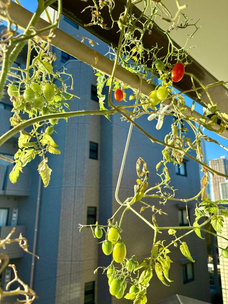 食べてみると最初にできたトマトより味は劣りますが、皮も硬くなくて売っているミニトマトと変わらないと思います。