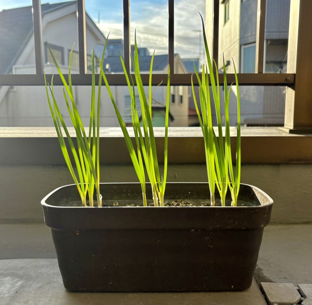 そしてミニトマトの苗を買った時におまけで頂いた九条ネギの細ネギの種ですが、とりあえず植えたらこうなりました!