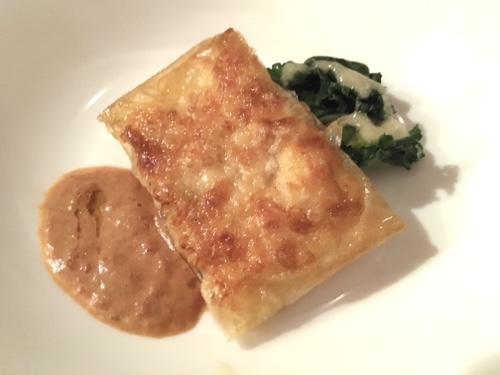 5皿目・天然海老のパートフィロ包み焼き アメリケーヌソース