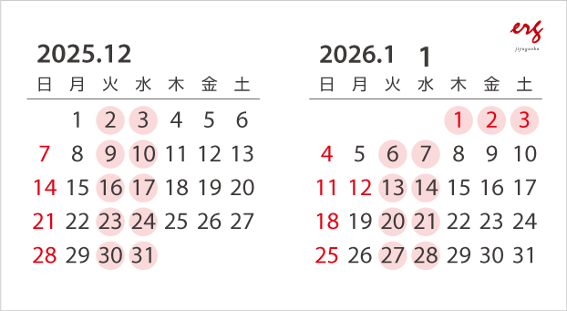 尚、12/30(火)~ 1/3(土)までの5日間を連休とさせて頂きます。